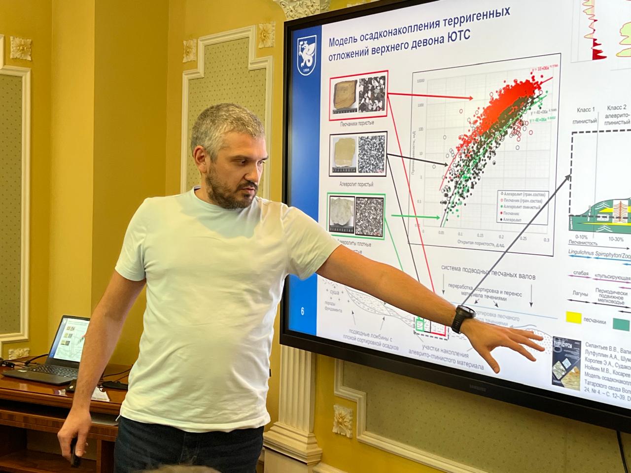 Знакомство с ИГиНГТ завершила презентация «Региональные геолого-петрофизические работы». Ее представил вниманию гостей Марат Валидов.