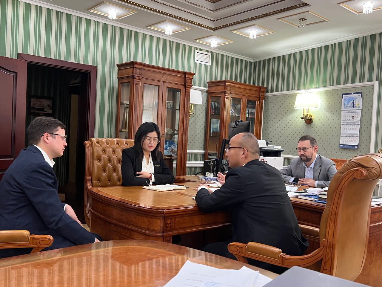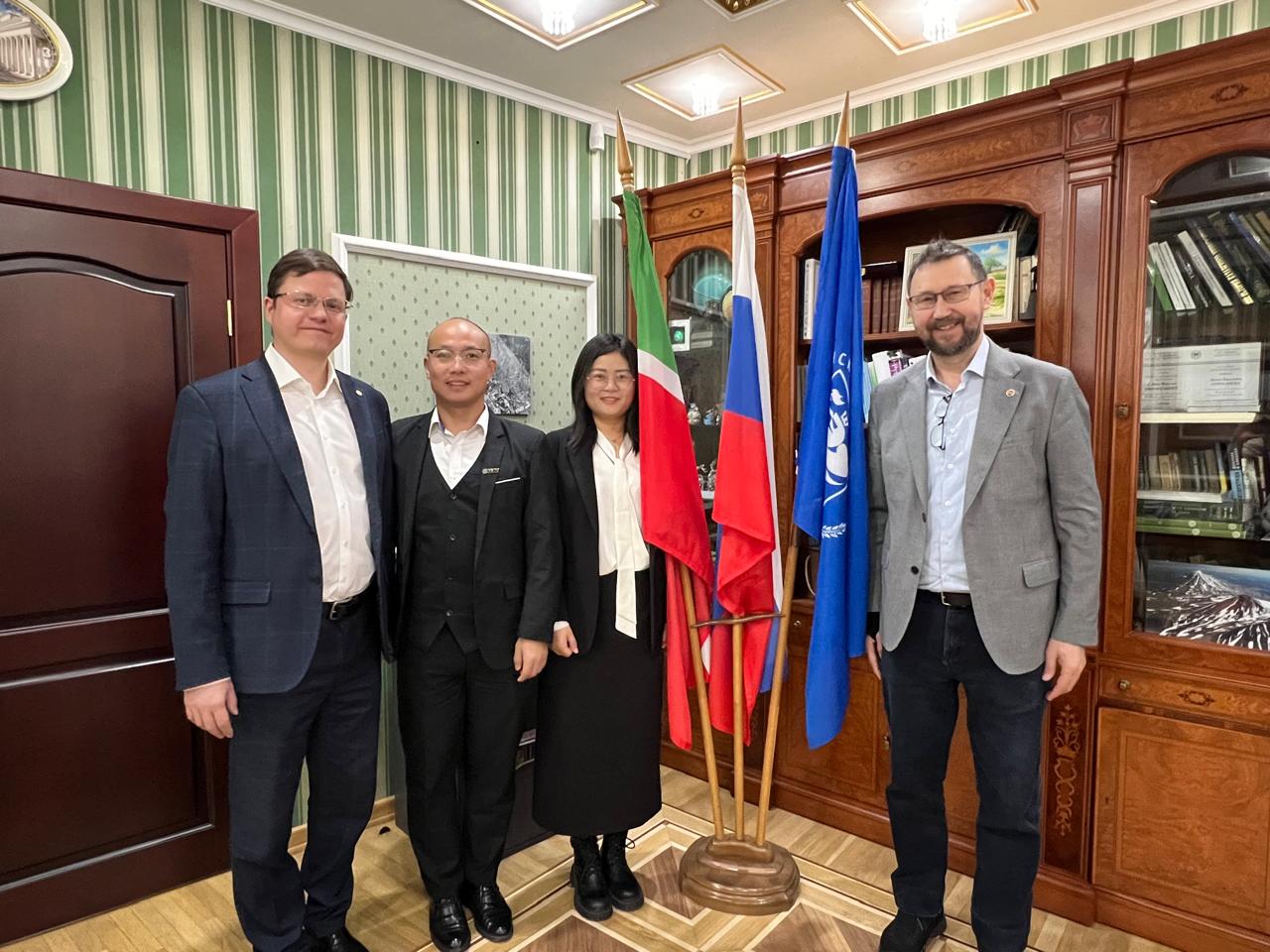 Во встрече с проректором по направлениям нефтегазовых технологий, природопользования и наук о Земле Данис Нургалиевым и директором технологического парка «Малотоннажные химические технологии» КФУ, заведующим кафедрой разработки и эксплуатации месторождений трудноизвлекаемых углеводородов ИГиНГТ Михаилом Варфоломеевым приняли участие генеральный менеджер отдела нефтепромысловой химии Лю Чжаося и старший менеджер по продажам этого отдела Сюн Цзе.