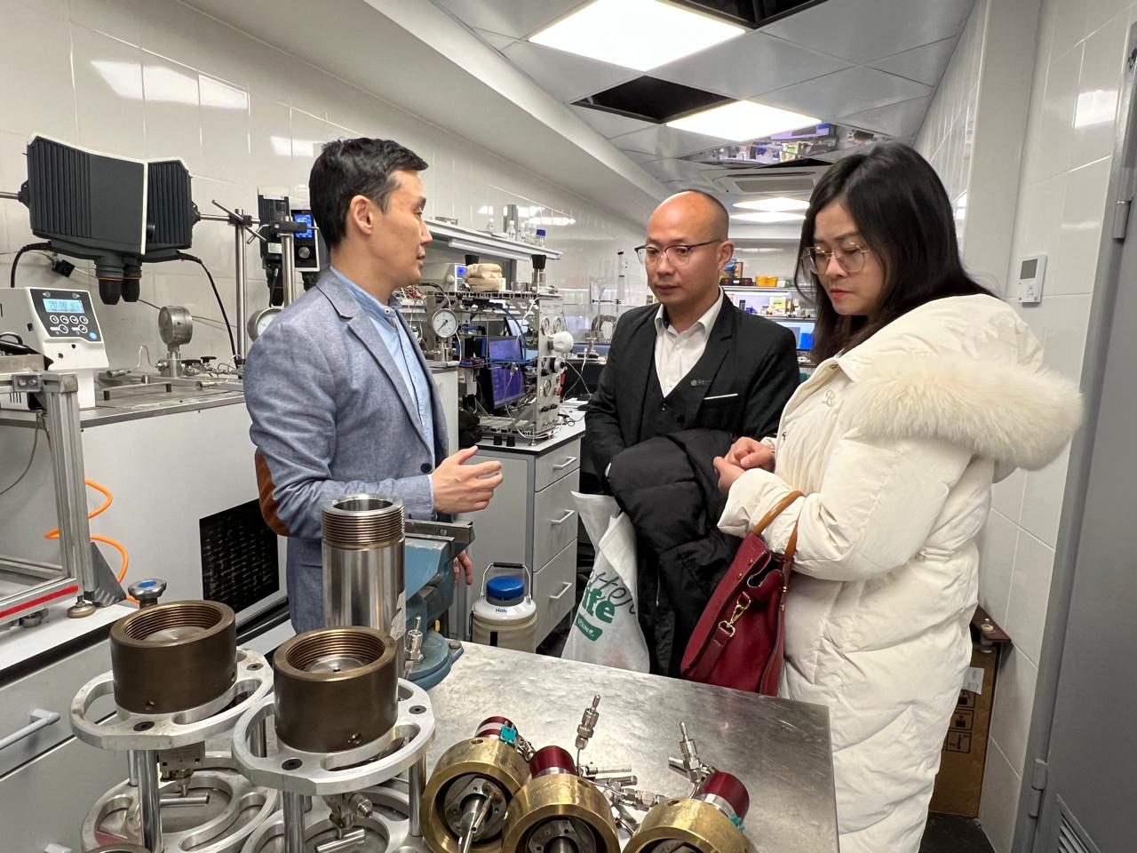 После встречи с представителями руководства вуза гости из Китая посетили лаборатории ИГиНГТ и остались очень довольны увиденным. Лю Чжаося и Сюн Цзе сказали, что смогли убедиться в том, что лабораторная база КФУ позволяет проводить полный цикл тестирования реагентов для нефтегазовой отрасли, в том числе создаваемых на основе биоразлагаемых материалов.
