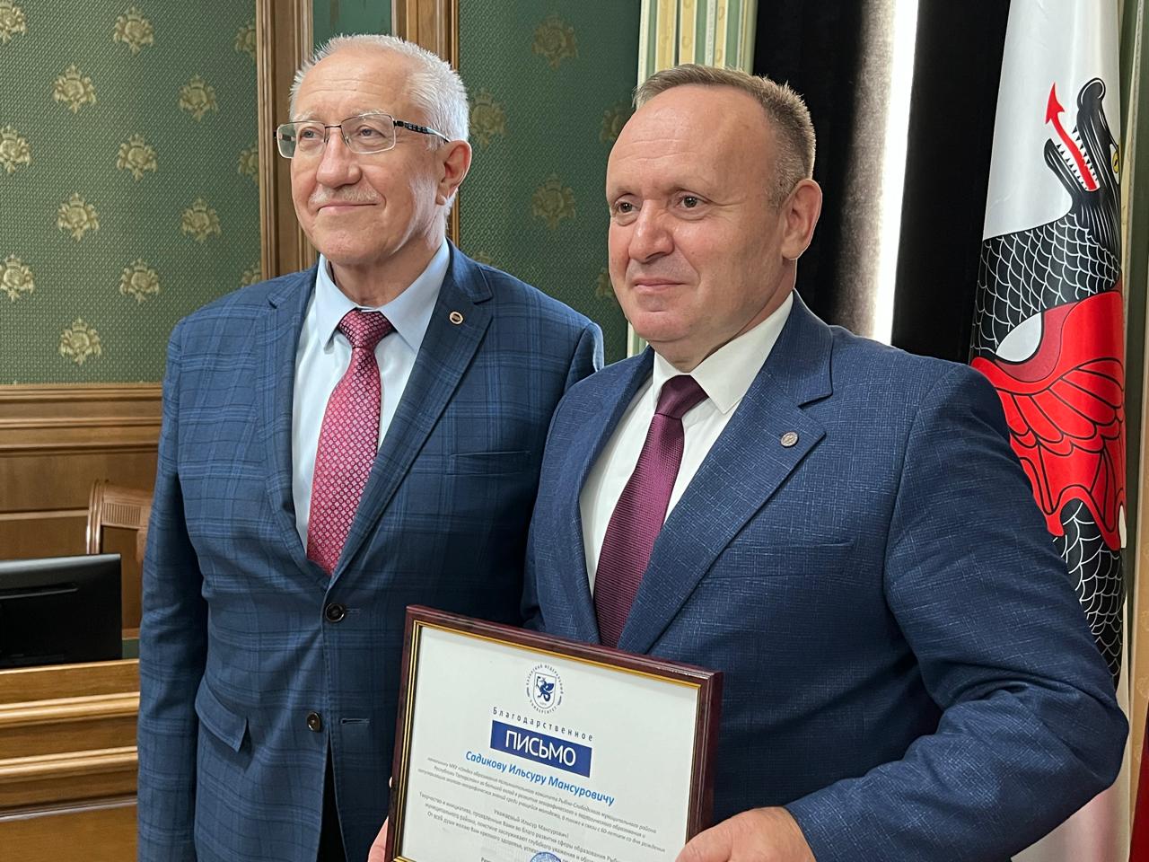 В завершение заседания Р. Минзарипов вручил благодарственное письмо, подписанное ректором Казанского федерального университета Ленаром Сафиным, Ильсуру Садикову. Так был отмечен его вклад в развитие географического и экологического образования и популяризацию эколого-географических знаний.