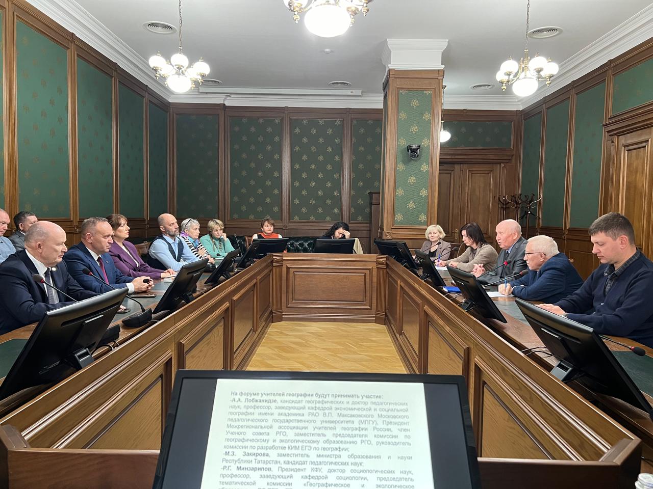 В Казанском федеральном университете под председательством Президента КФУ Рияза Минзарипова прошло заседание тематической комиссии «Географическое и экологическое образование» регионального отделения Всероссийской общественной организации «Русское географическое общество» в Республике Татарстан.
