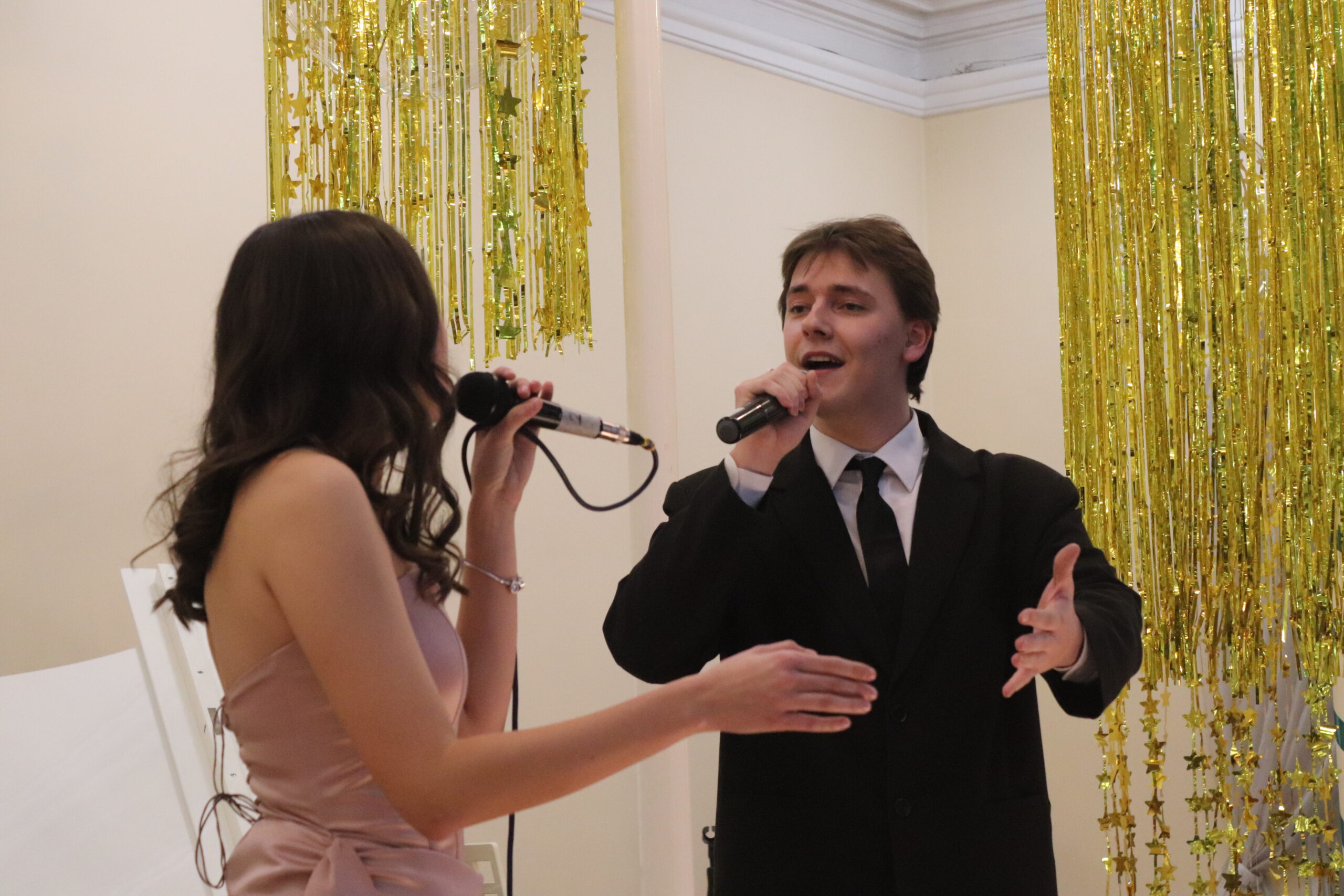 В перерывах между танцами прозвучали три вокальные композиции: Never Enough – в исполнении студента ИГиНГТ Алексея Киселёва и студентки Юридического факультета Алины Айзятовой, «Опять метель» и «Звенит январская вьюга» – в исполнении вокального ансамбля хозяев мероприятия «Альба».