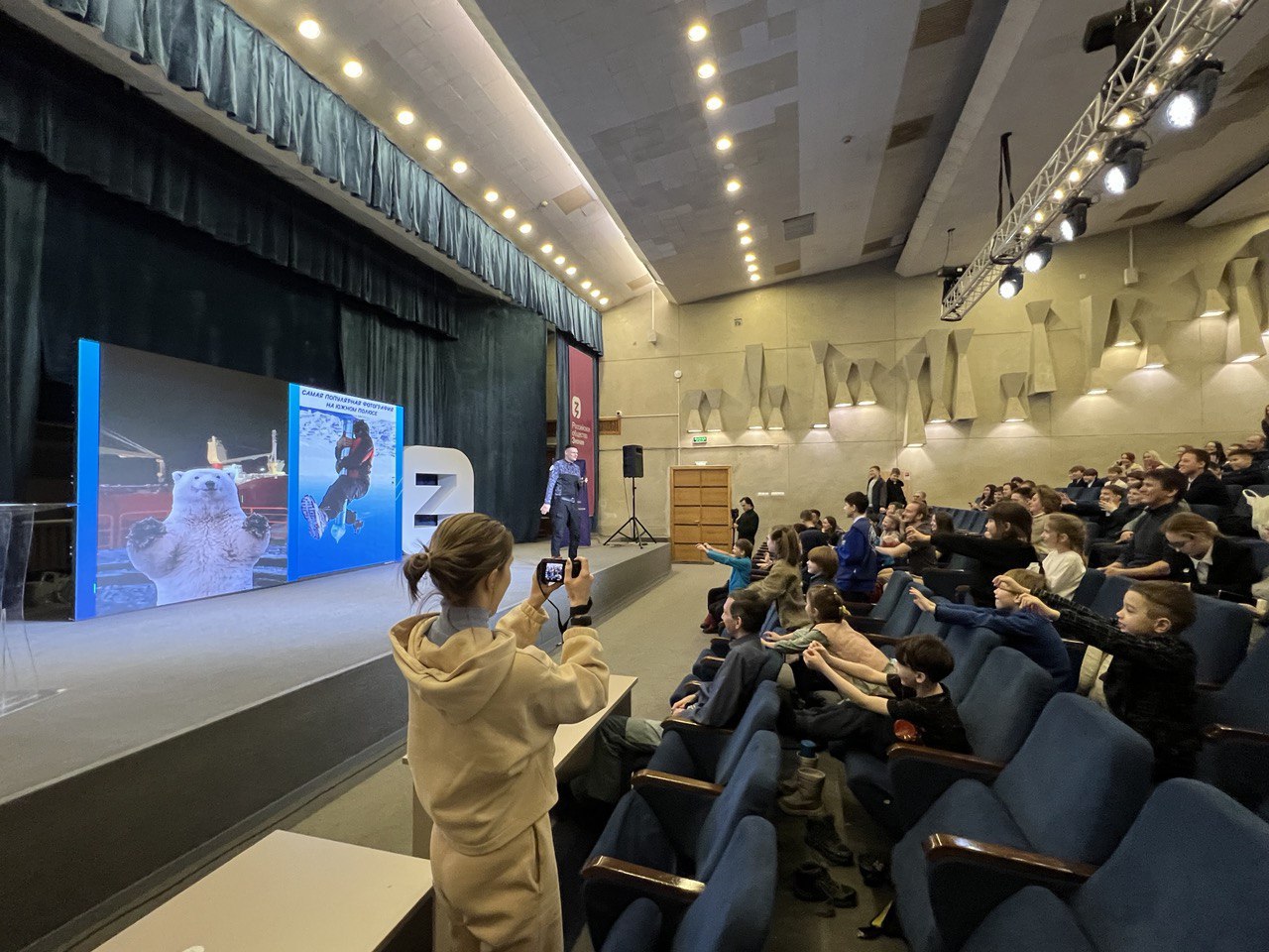 Послушать занимательную историю о том, как врач стал полярником и какие испытания ему приходилось преодолевать во время работы на российской антарктической станции «Восток», пришли в КСК КФУ «УНИКС» казанские студенты и школьники разного возраста – от первоклашек до одиннадцатиклассников.