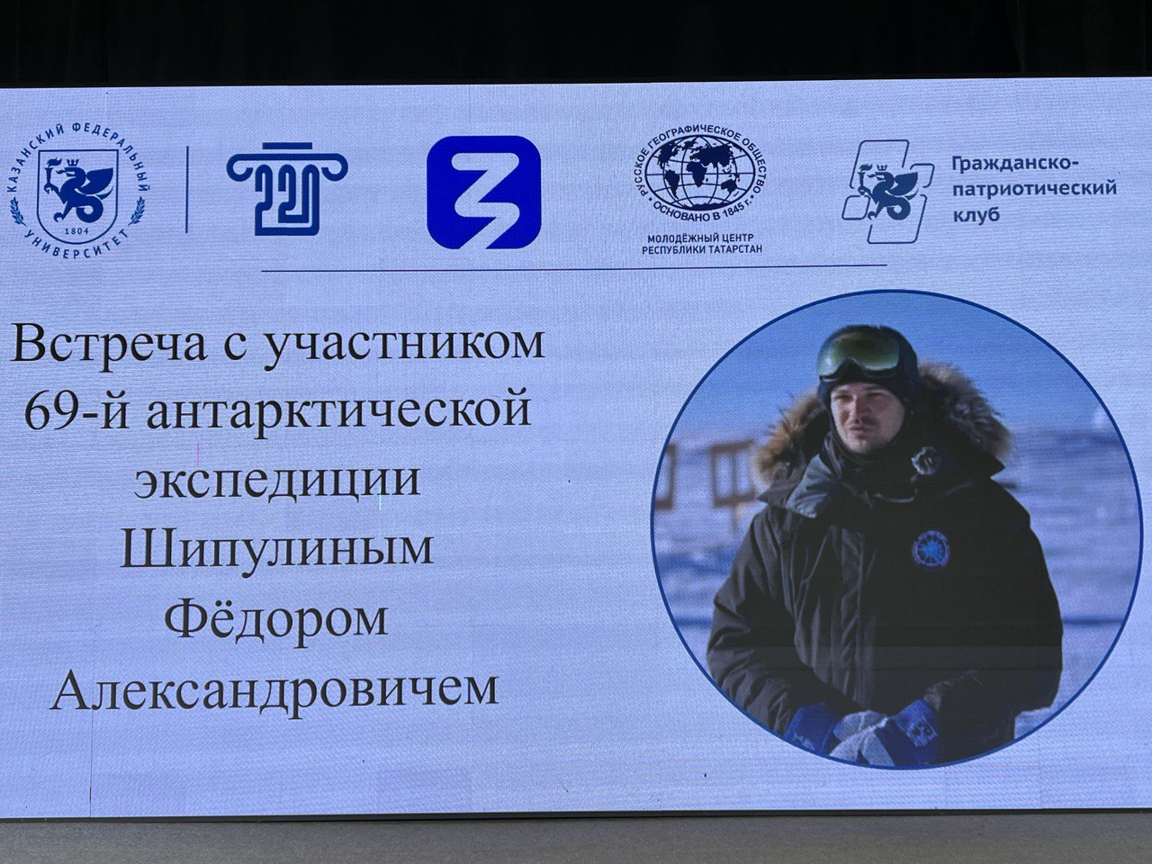 В Казанском федеральном университете состоялась встреча с участником 69-й Российской антарктической экспедиции, анестезиологом-реаниматологом, альпинистом Федором Шипулиным.