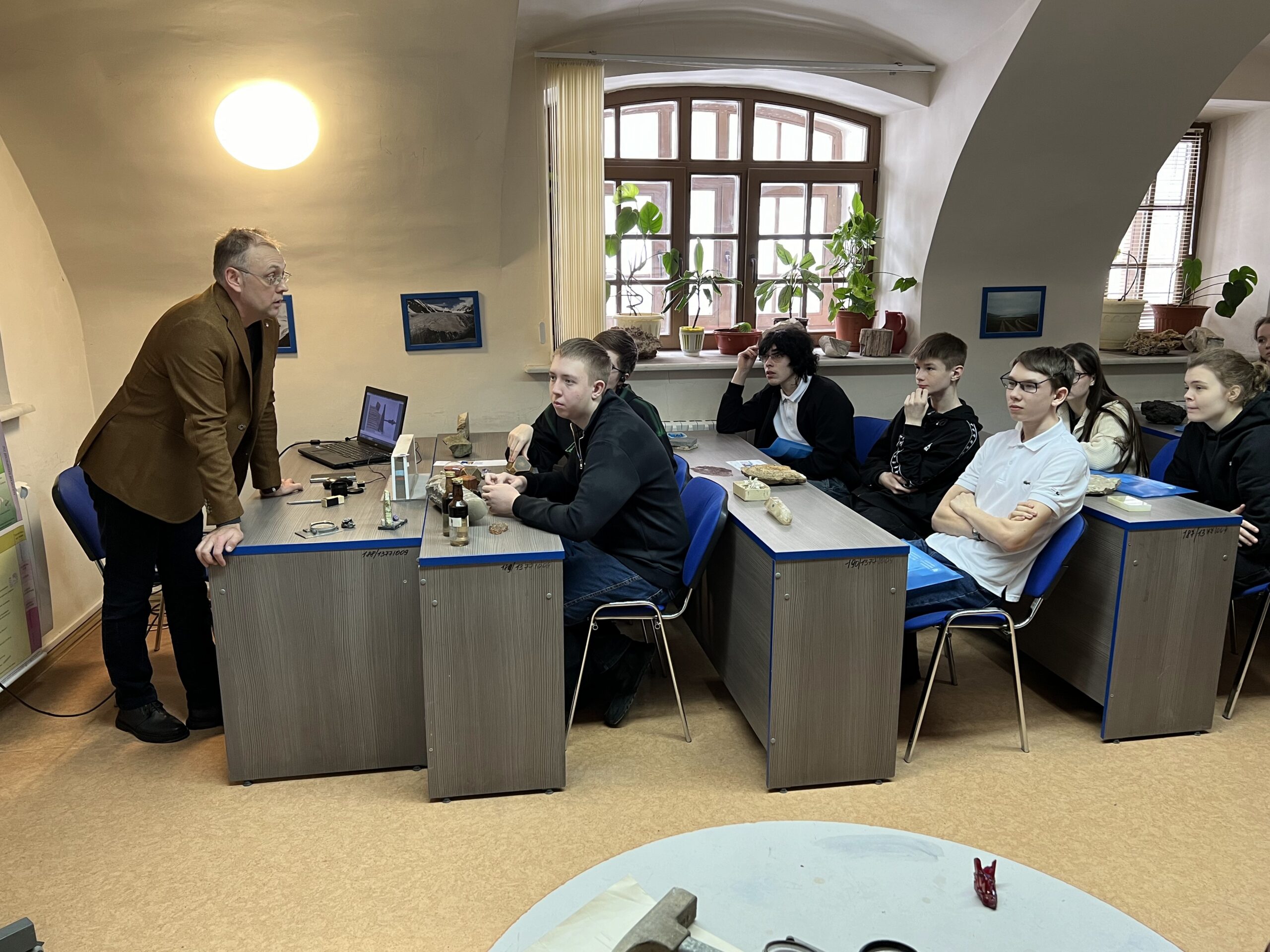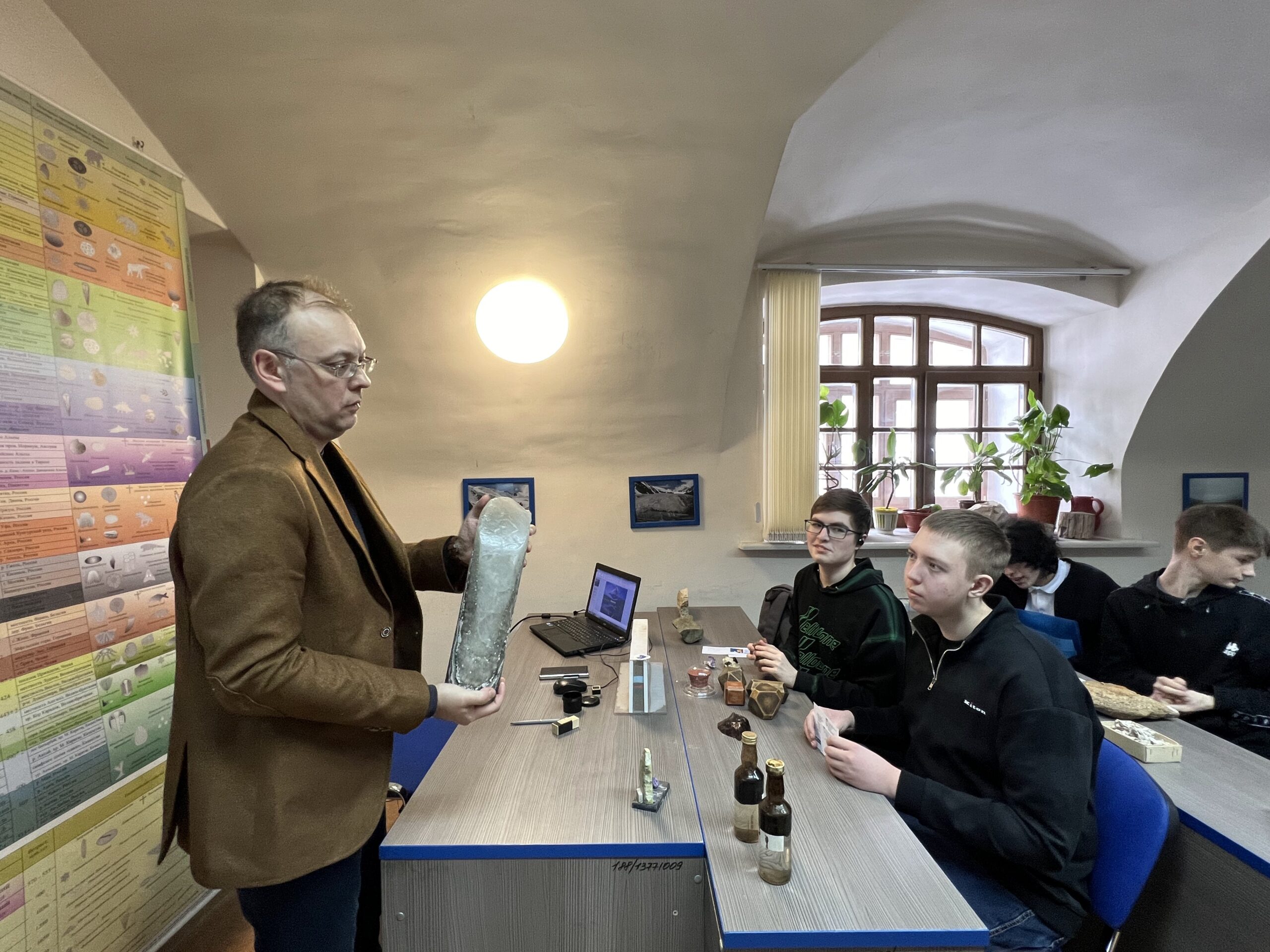 Заместитель директора по образовательной деятельности ИГиНГТ Андрей Терехин рассказал об уникальности и многогранности профессии геолога, отметив, что его «рабочее место» – это вся планета Земля.