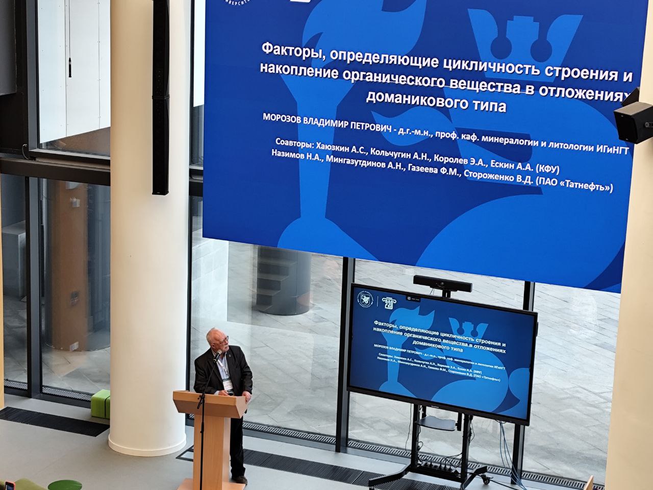 В выступлении В.Морозова рассматривались условия осадконакопления отложений доманикового типа, которые широко представлены в Татарстане, но пока практически не осваиваются. Оно называлось «Факторы, определяющие цикличность строения и накопление органического вещества в отложениях доманикового типа».